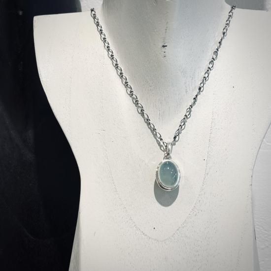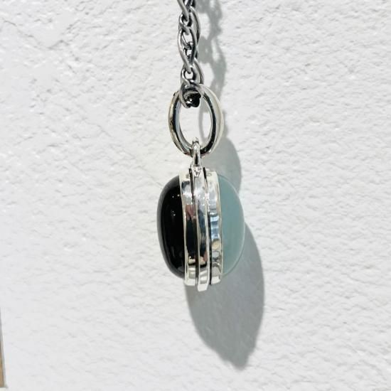 2種類のジェムストーンを表裏にセットしたリバーシブルの ペンダント